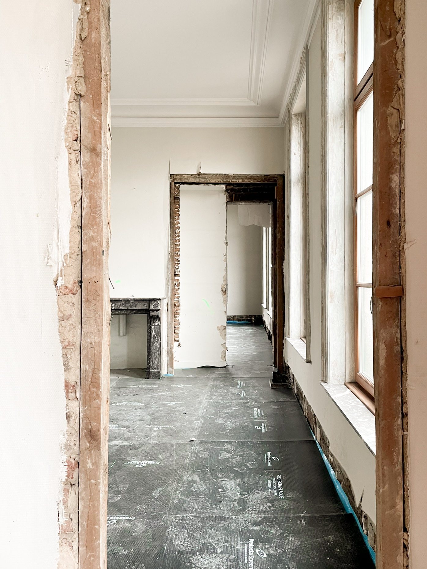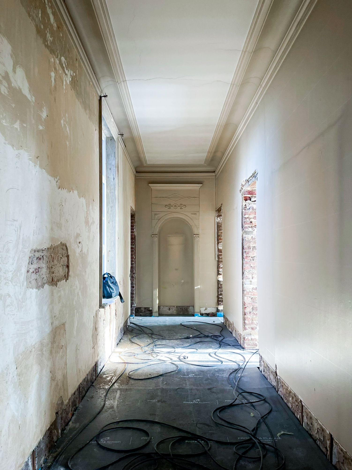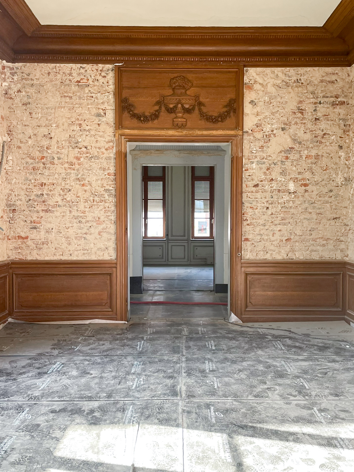 2. SEQUENCE SPATIO-TEMPORELLE : Une percée transversale entre les deux corps de bâtiment articule la maison d’origine et l’extension des années 80, avec un parcours fluide qui met en scène les alcôves historiques et offre une traversée entre les époques.