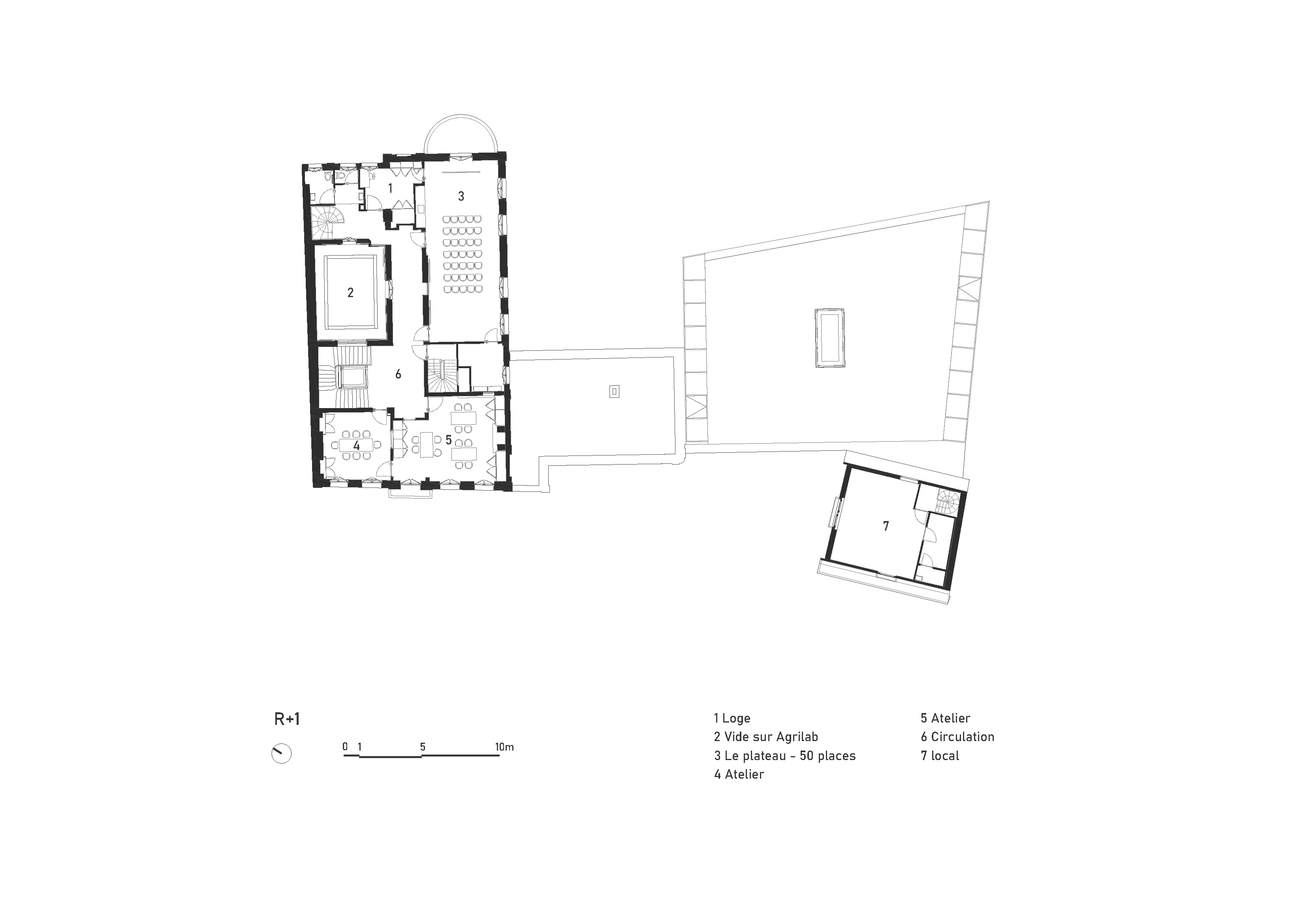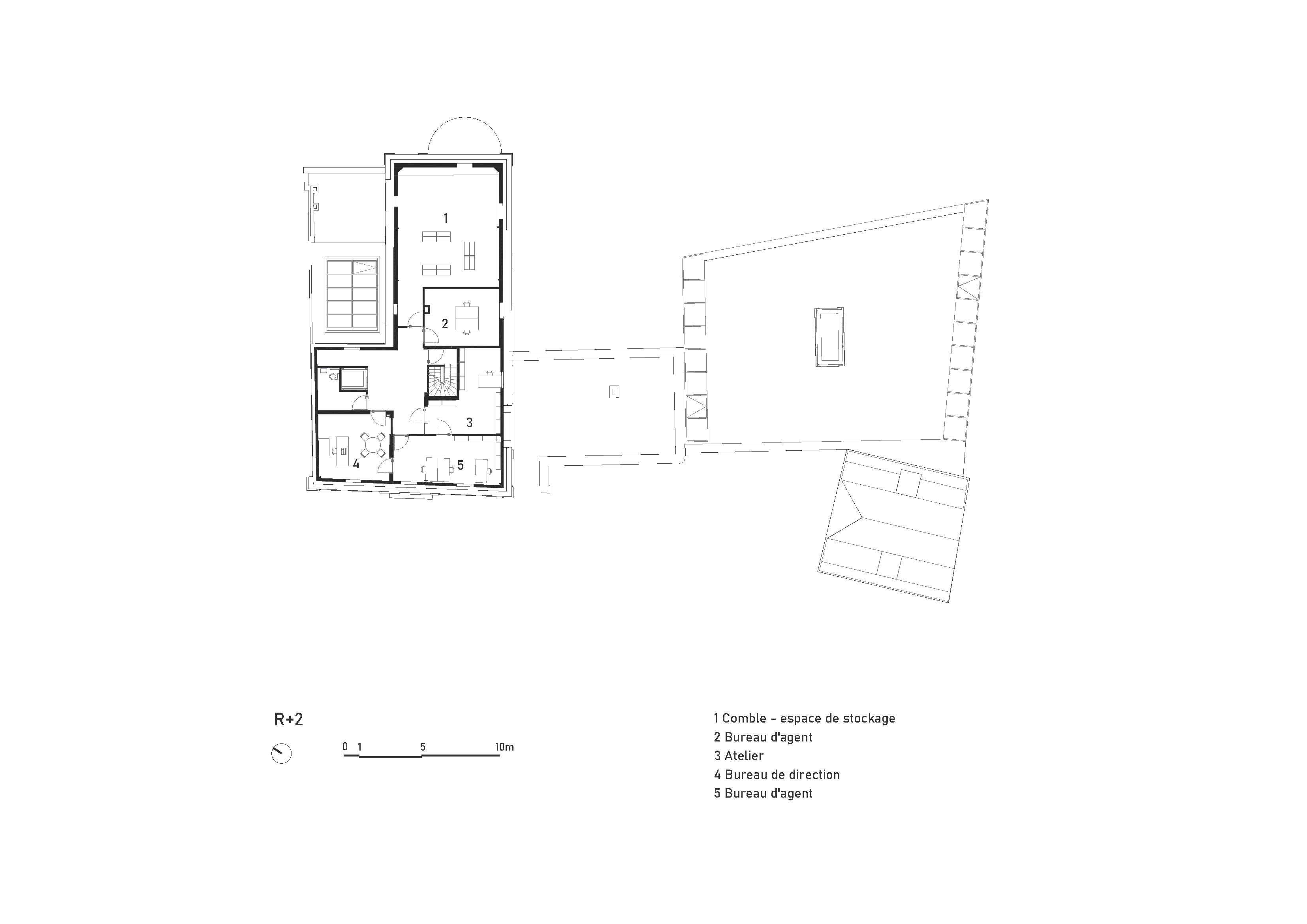 OUVERTURE EN TROIS DIMENSIONS La transformation de la Maison Leroux en médiathèque et tiers lieu passe par une ouverture physique de l’édifice en trois dimensions. Chaque intervention révèle et active les strates historiques du site.